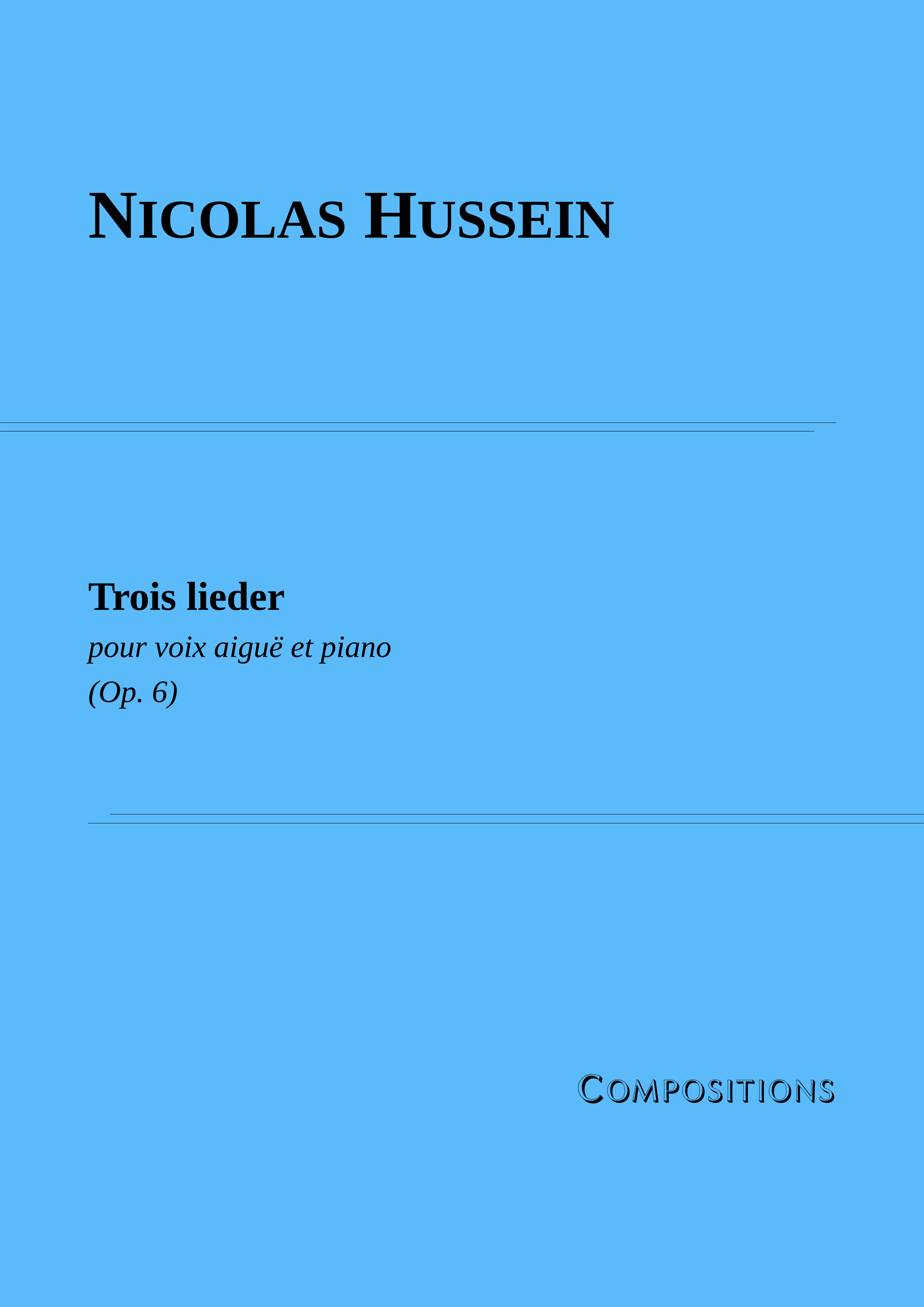J’ai la joie de vous faire part de la publication de mes Trois lieder pour voix aiguë et piano op. 6. J’ai composé ce recueil de mélodies pour voix aiguë (soprano / ténor) et piano en 2013-2014. Trois poèmes de Goethe ont été mis en musique dans une esthétique inspirée de Robert Schumann et Johannes…